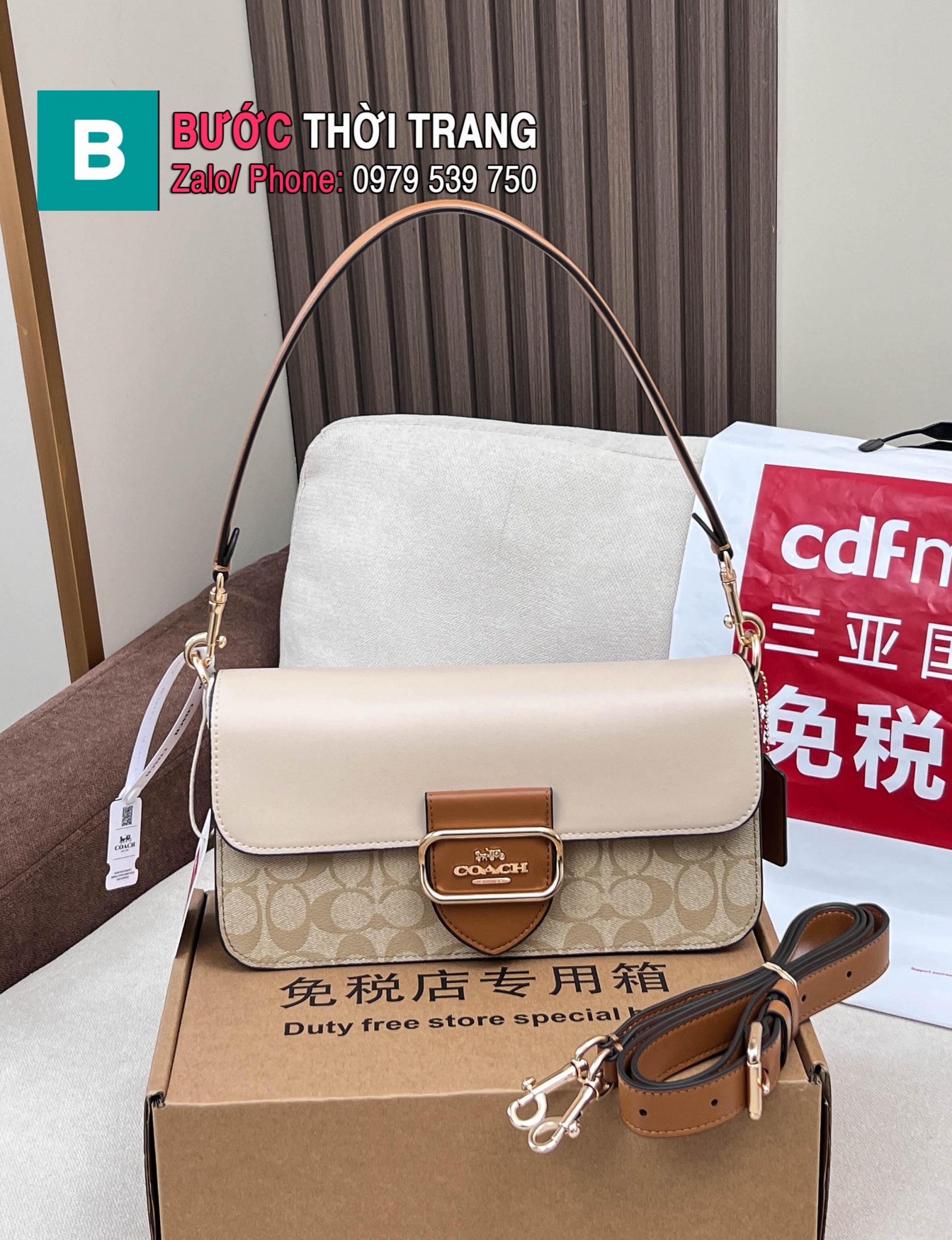 Túi xách nữ COACH tabby dáng ngang màu nâu nude size 26.5x14x6,5cm
