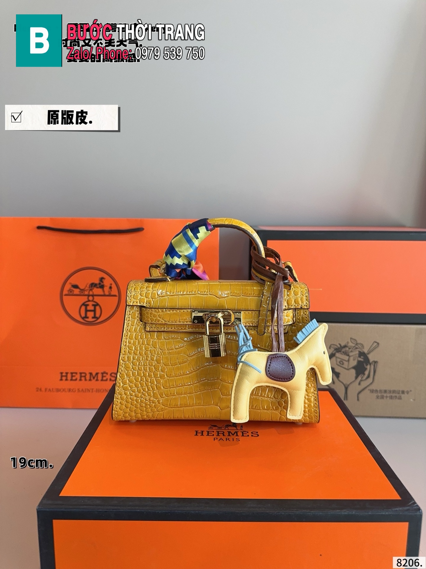 Túi xách nữ HM Kelly nhiều màu dập vân da cá sấu size 19 cm