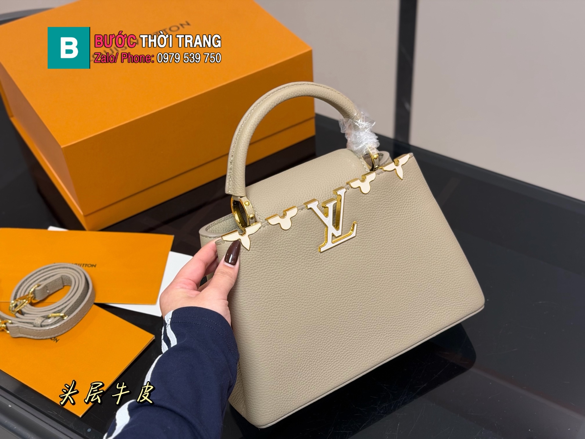 Túi xách nữ Lv capucines màu nâu be size 27×18 cm phong cách thanh lịch chất da bò cao cấp