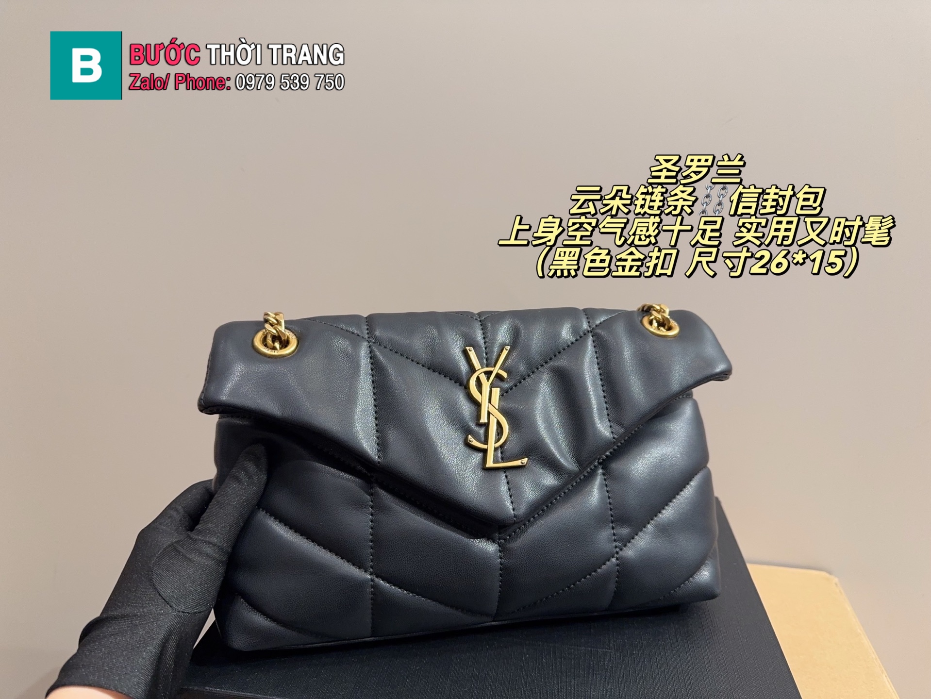 Túi xách nữ YSL LouLou Puffer màu đen size 26×15 cm dáng phong bì da mềm mại