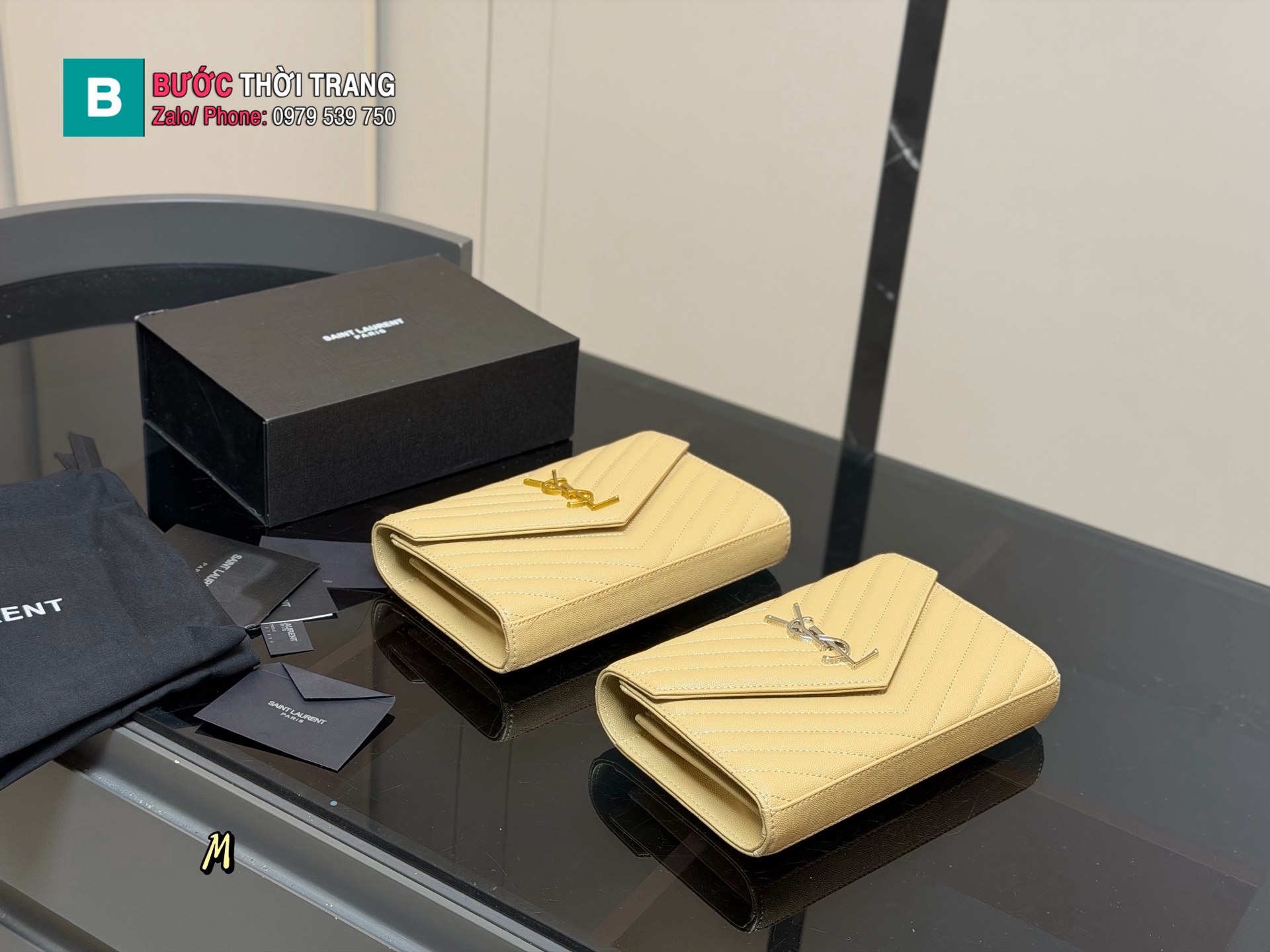 Túi xách YSL woc phong bì nhiều màu vân chữ V size 22×14 cm đáy tròn